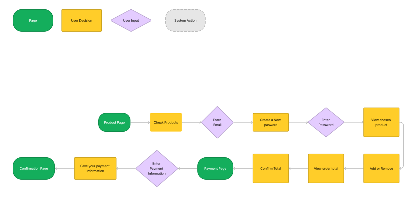 I created a task flow for ordering a product because users often encounter challenges while trying to achieve this goal.