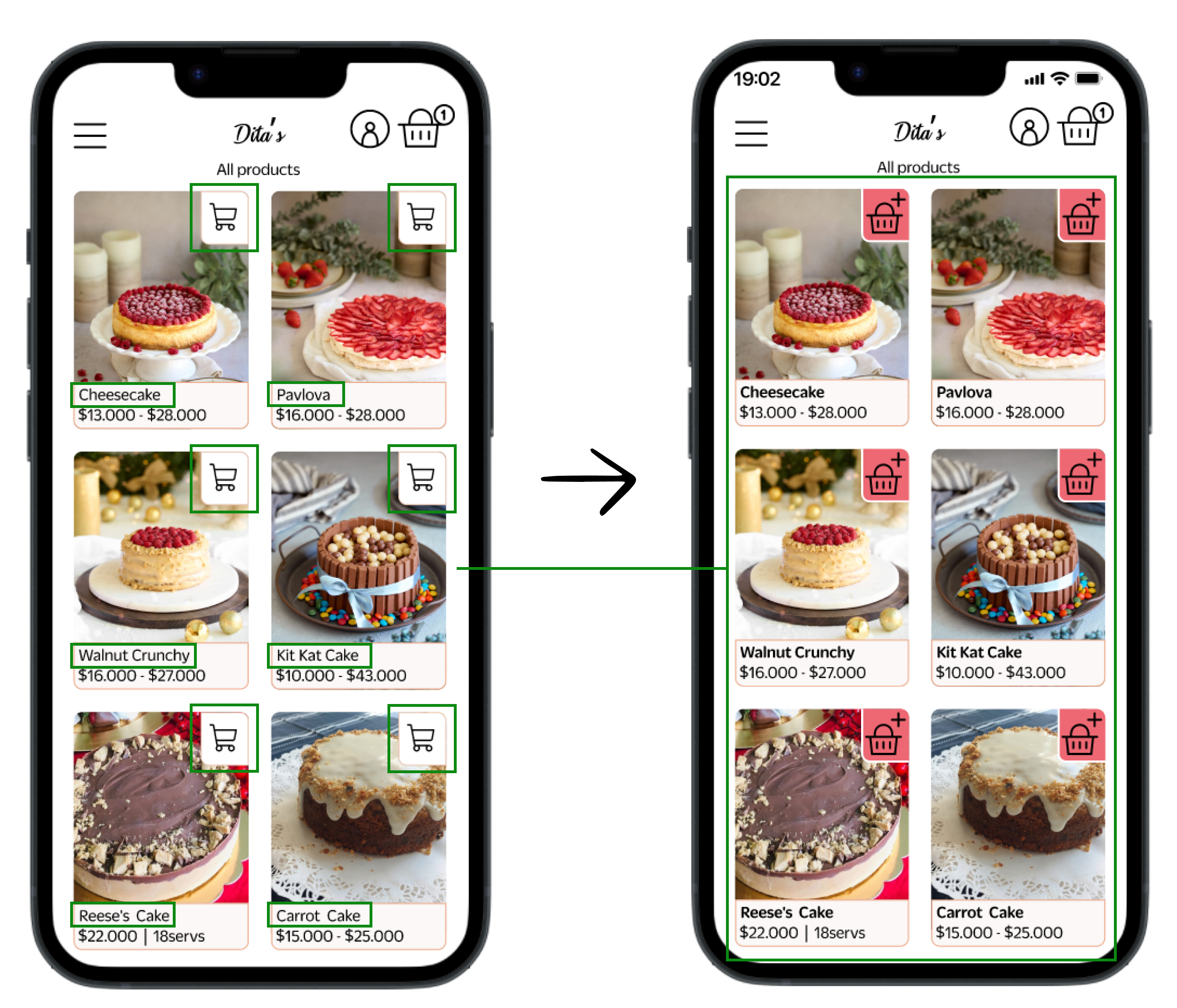 I made some final adjustments to improve users' ability to identify essential information. I increased the contrast for cart and product names. Additionally, I replaced the cart icon with the same one used in the top navigation to maintain consistency in design elements.