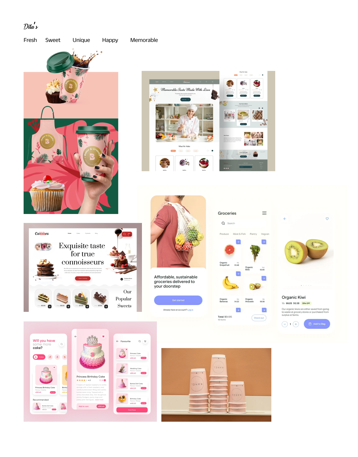 I searched for images and colors that matched its identity. I wanted to capture the freshness, sweetness, uniqueness, happiness and memorability of its products and services to express the design vision.