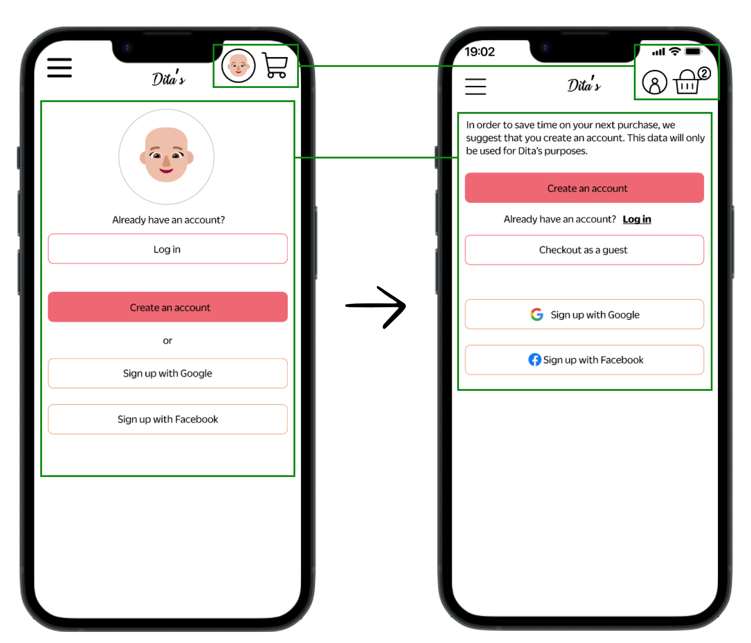 I addressed those issues by adding a number to the cart, rephrasing topics, adding more specific information to the product, and completing the delivery information with all possible options.